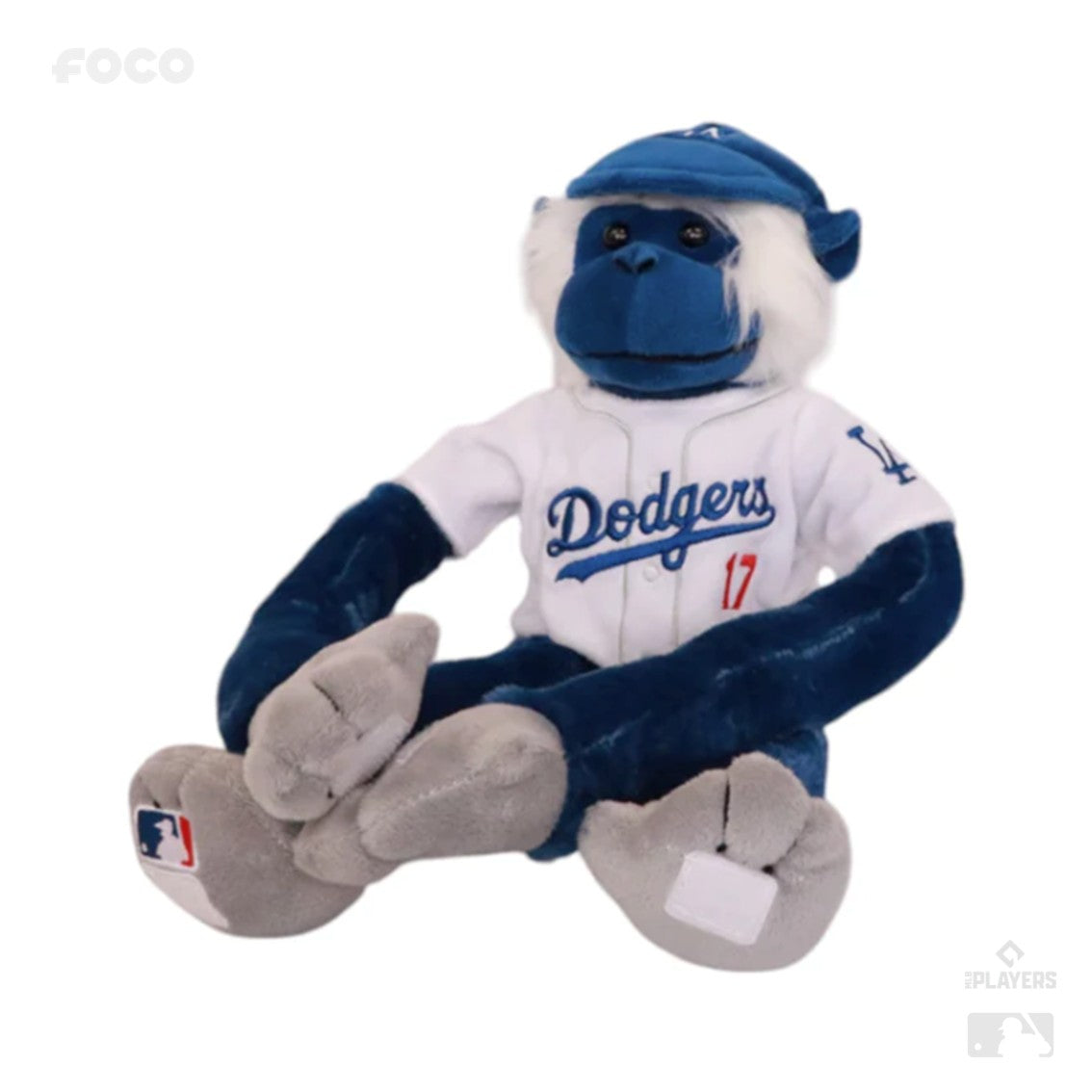 右足にはMLBのロゴ入り!両手足にマジックテープがついているので、ぶら下げて飾ってもかわいいぬいぐるみです。